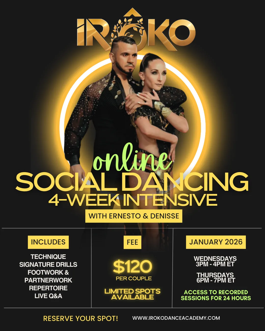 ONLINE ONLY - Train directly with World Champions Ernesto & Denisse from the comfort of your home — no matter where you are in the world. 🌍💃🕺