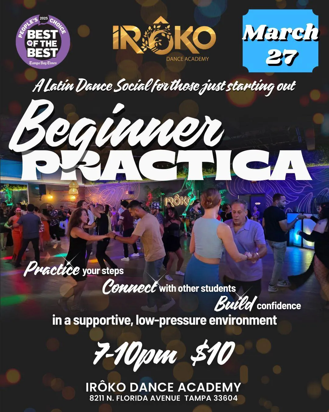 Our monthly Beginner Práctica is for our students in beginner levels - and we welcome ALL beginners of Tampa Bay!